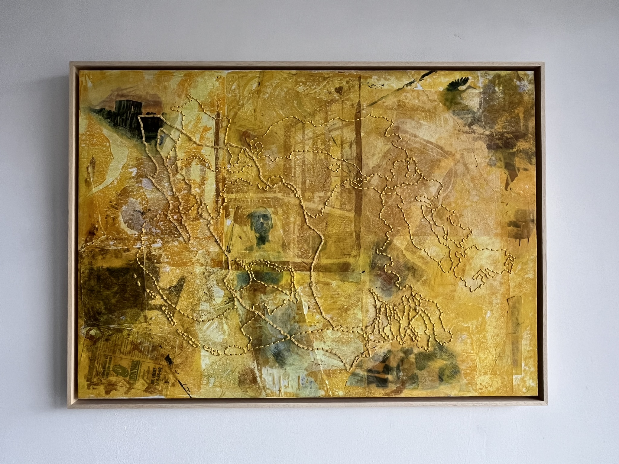 I tried to capture how Harumi feels. Living in the Netherlands as a Mexican with japanese heritage is freeing to her. Not being the only Asian looking one anymore, like in Mexico, but just another foreigner in the mixed crowds of the Netherlands. And not being the strange one in Japan, where she looks like them but doesn’t know al the etiquettes and words. And now to commemorate her third nationality, so to speak, I made this piece for her. She has got only a Dutch passport now, but is still very much rooted in the other countries of her culture and heritage. With this piece I wanted to show her she has a home in three places in the world and let her know she is appreciated by people that love her in all three places. To be one whole human being with a strong connection to three completely different countries is a beautiful thing.
